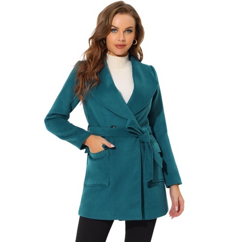 Allegra K Women's Notched Lapel Single Breasted Outwear Winter Coat Lake Blue X-large : Target