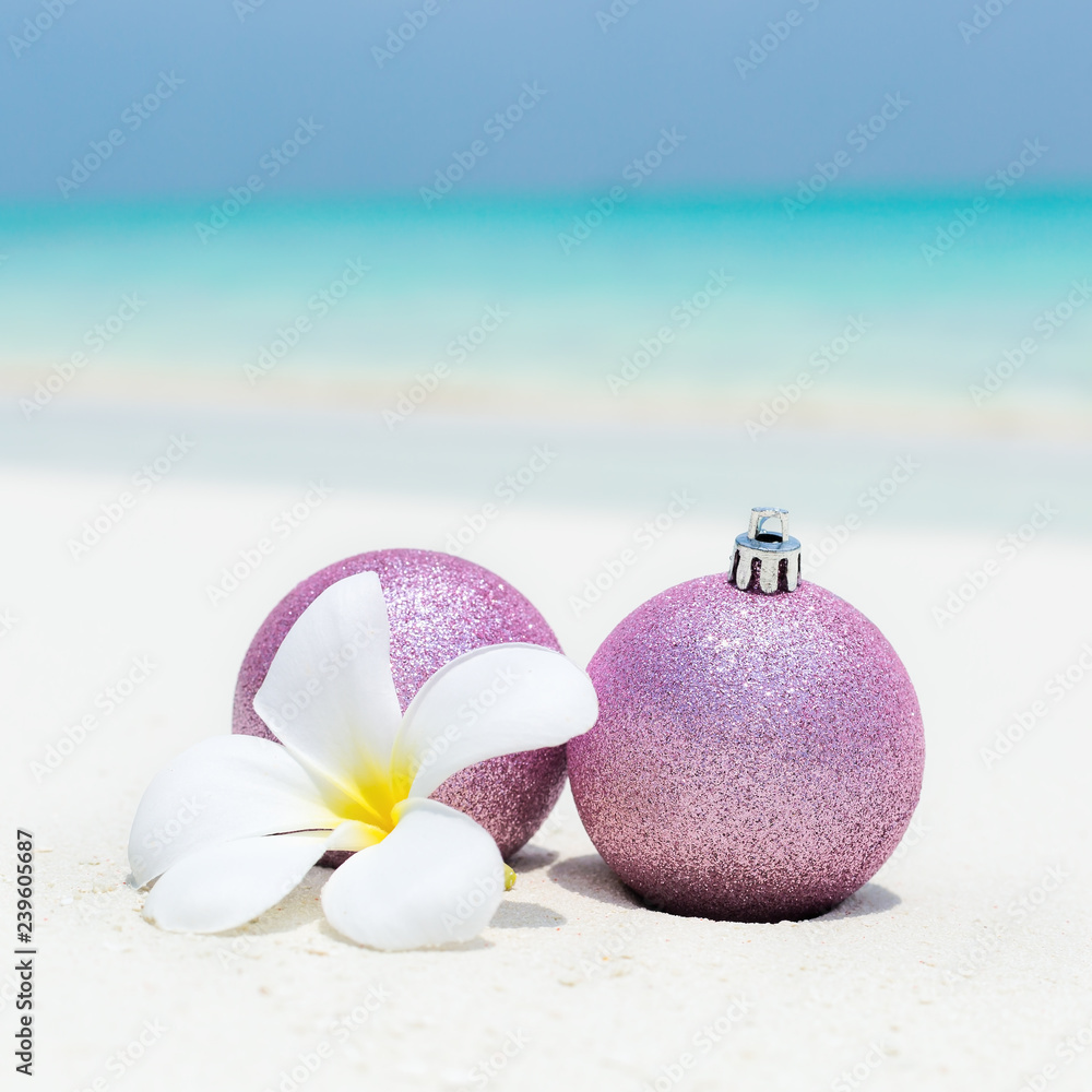 Christmas balls decorations with plumeria flower Stock Photo | Adobe Stock