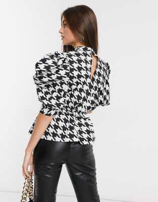 Houndstooth Peplum Top by Derek Lam