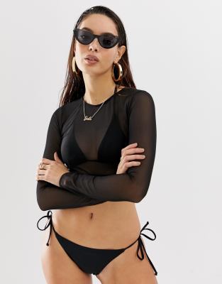 ASOS DESIGN mesh long sleeve bikini top