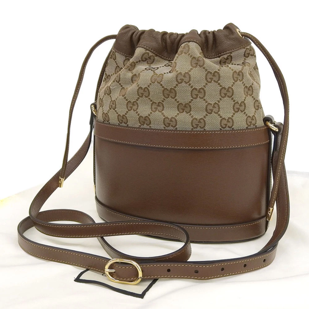 GUCCI 1955 Horsebit GG Canvas Bucket Bag One Shoulder Drawstring Beige/Brown | eBay
