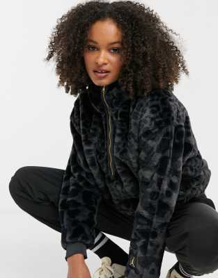 Jordan faux fur hoodie in grey animal