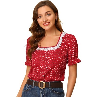 White Mark Women's Cold Shoulder Ruffle Sleeve Top, Red, Small