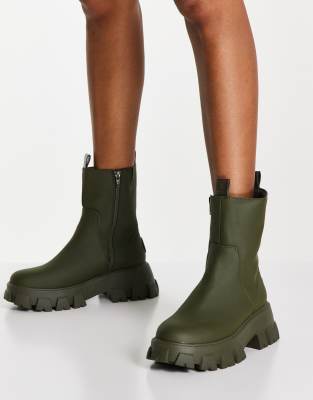 River Island Khaki Rubber Chunky Boots - Green - Ankle Boots