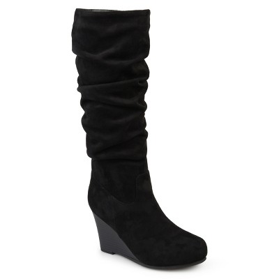 Black Wedge Boots, Knee High Boots, Suede Slip-On Boots, Vegan Leather Boots, Wide Fit Black Boots, Comfortable Autumn Shoe