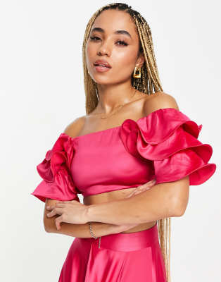 Hot Pink Puff Ruffle Sleeve Top
