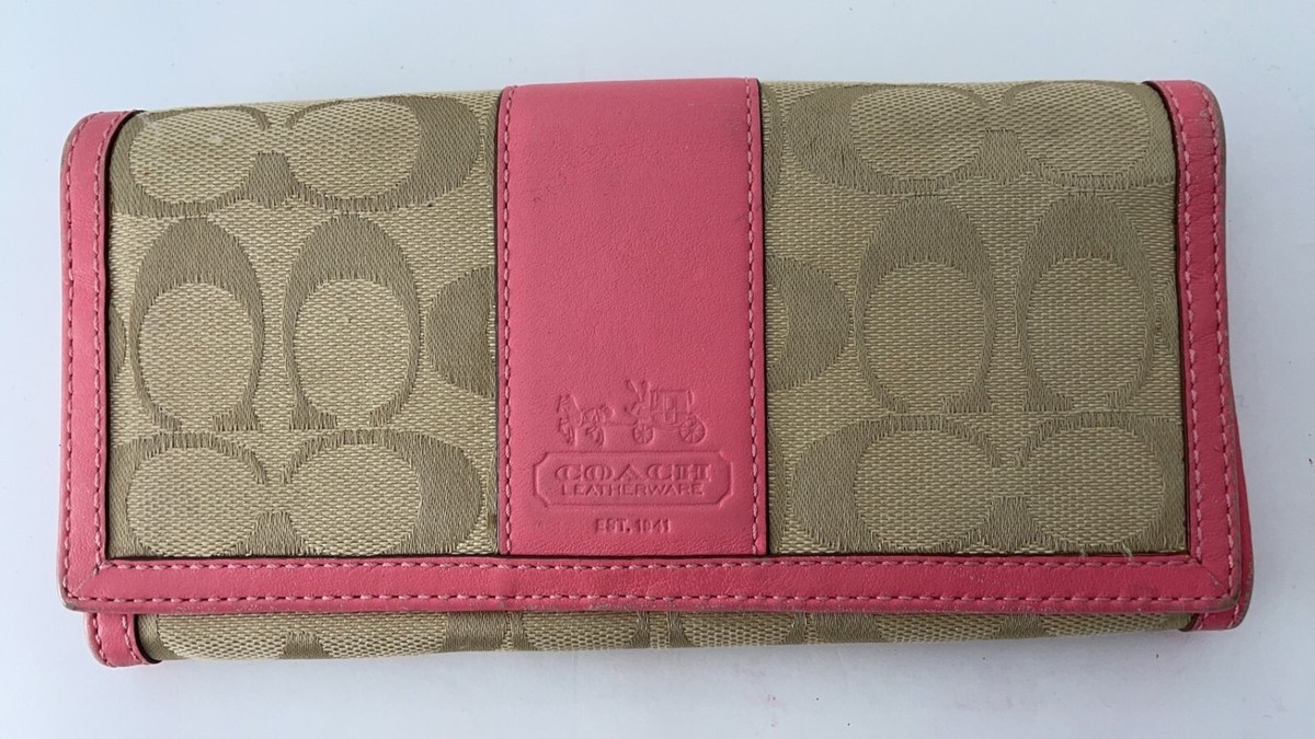 COACH Women's Bifold Long Wallet Leather u0026 Fabric Pink u0026 Beige 7.6 x 3.8 x 1.1in | eBay