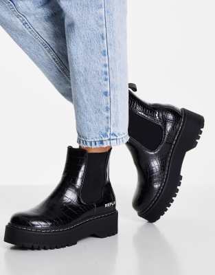 Replay croc detail chunky chelsea boots