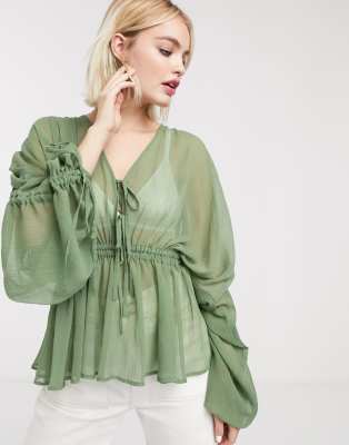 ASOS DESIGN sheer top with ruched
