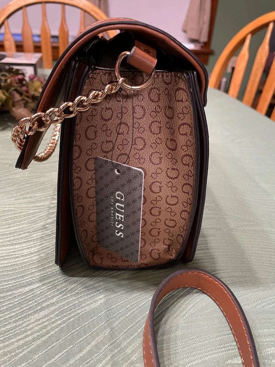 NWT Guess Women's Chai Flap Brown Leather Shoulder Bag Removable Crossbody Strap | eBay