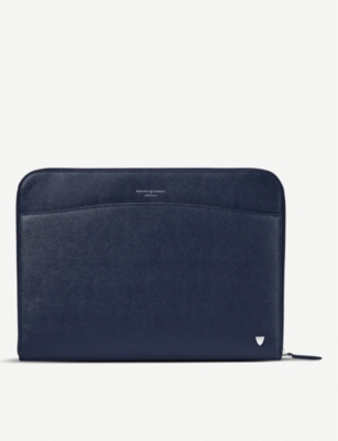 ASPINAL OF LONDON - Logo-embellished grained-leather laptop case | Selfridges.com
