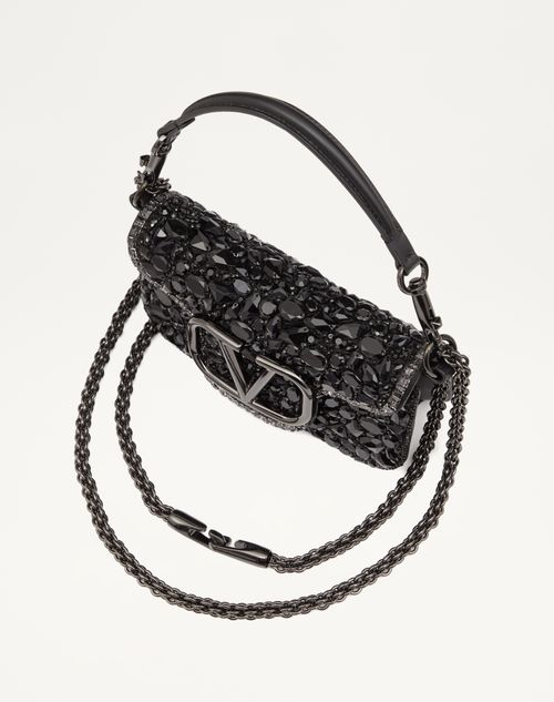 Small Locò Shoulder Bag With Crystals for Woman in Black | Valentino US