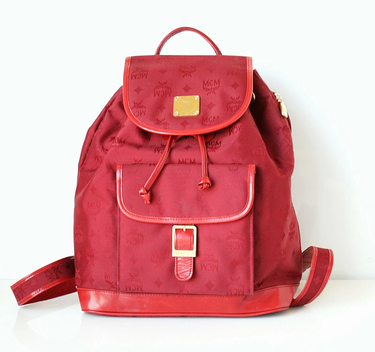 Auth MCM Red Visetos Jacquard Leather Backpack | eBay